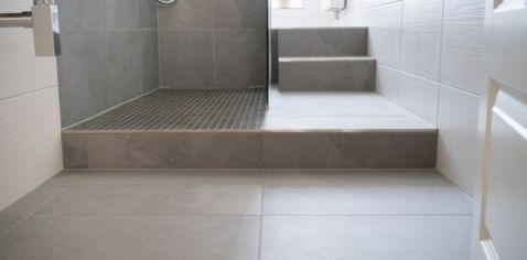 Eine weitere Möglichkeit: Sitzen die alten Bodenfliesen fest am Untergrund lassen sie sich überfliesen. Das funktioniert selbst bei einer Fußbodenheizung problemlos, sorgt allerdings für einen höheren Aufbau. Außerdem fallen auch für diese Maßnahme höhere Kosten an.
